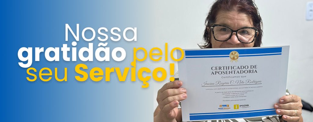 O Instituto de Previdência Municipal de Serra Branca (IPSERB) publicou a Portaria nº 01/2026, que concede aposentadoria voluntária à servidora pública municipal Iracina Rogéria Cavalcante Neta Rodrigues.